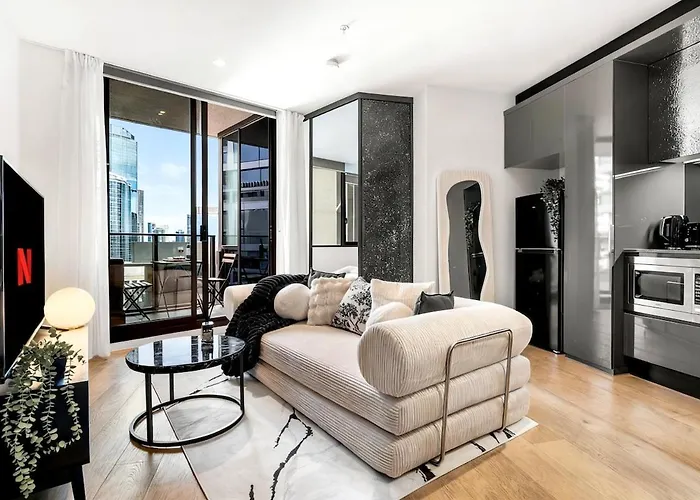 Das Luxury Designer 2Br Urban Apt W Pool & Gym & Parking Melbourne City liegt im Viertel Melbourne CBD von Melbourne City, ungefähr 11 Gehminuten vom Melbourne Aquarium entfernt, und bietet ein Fitnesscenter. Die Apartments bietet eine Terrasse und liegt 550 m vom Hellenic Museum.